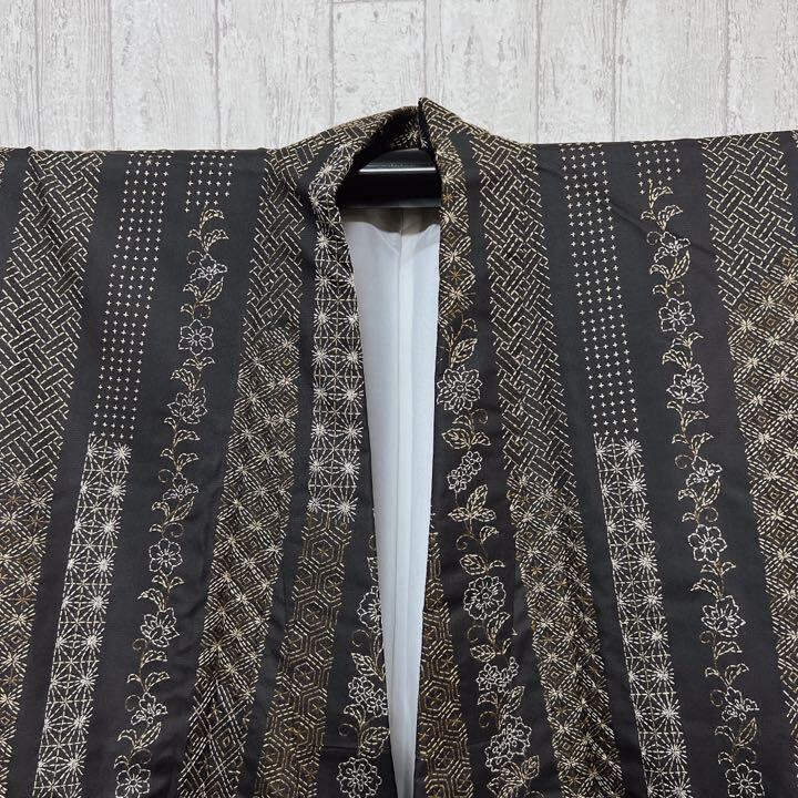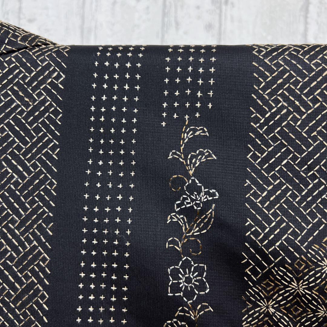 縦縞に草花や亀甲、檜垣などの様々な模様の刺子が、上品な艶を生み出す一着です。