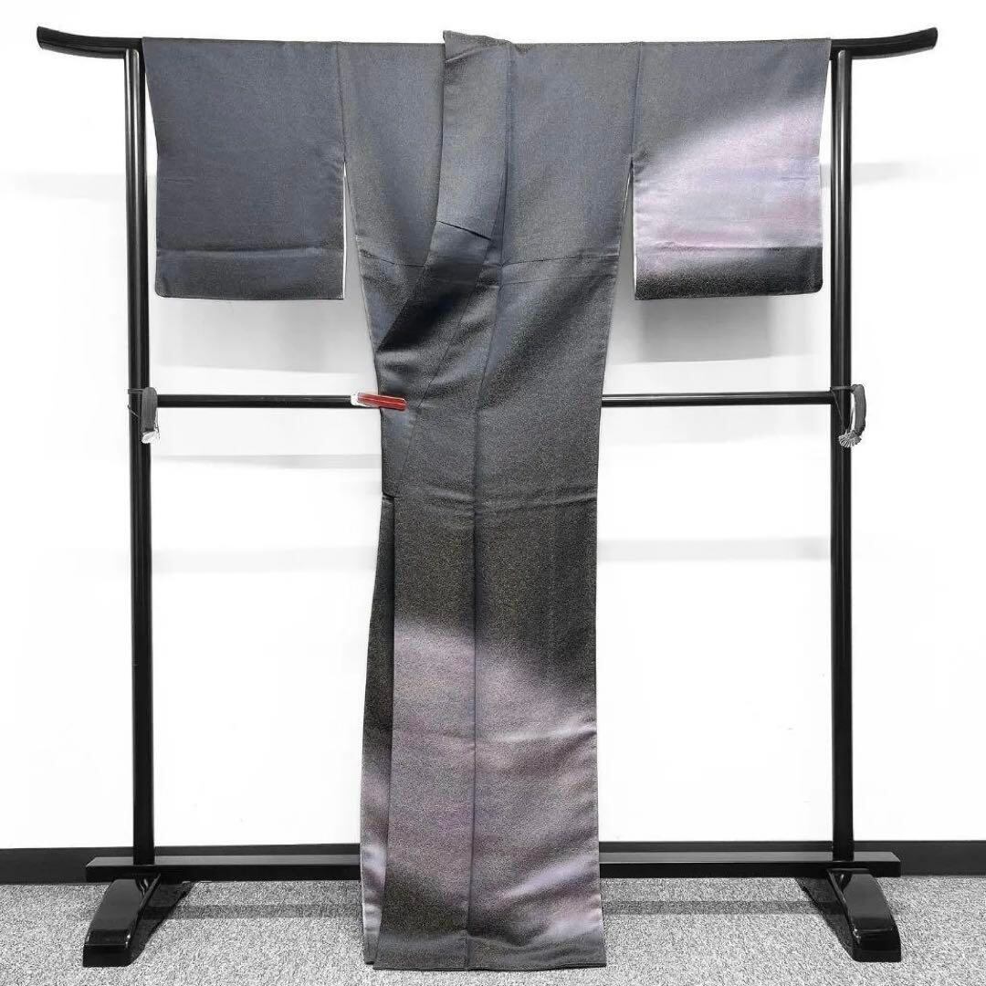 深いグレーの地に淡い霧模様の落ち着いた印象の、色合い、柄の調和に目を惹かれる一着です。
