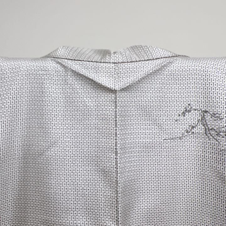 作家もの 亀甲柄の白大島紬に鳥獣戯画が描かれた訪問着です。