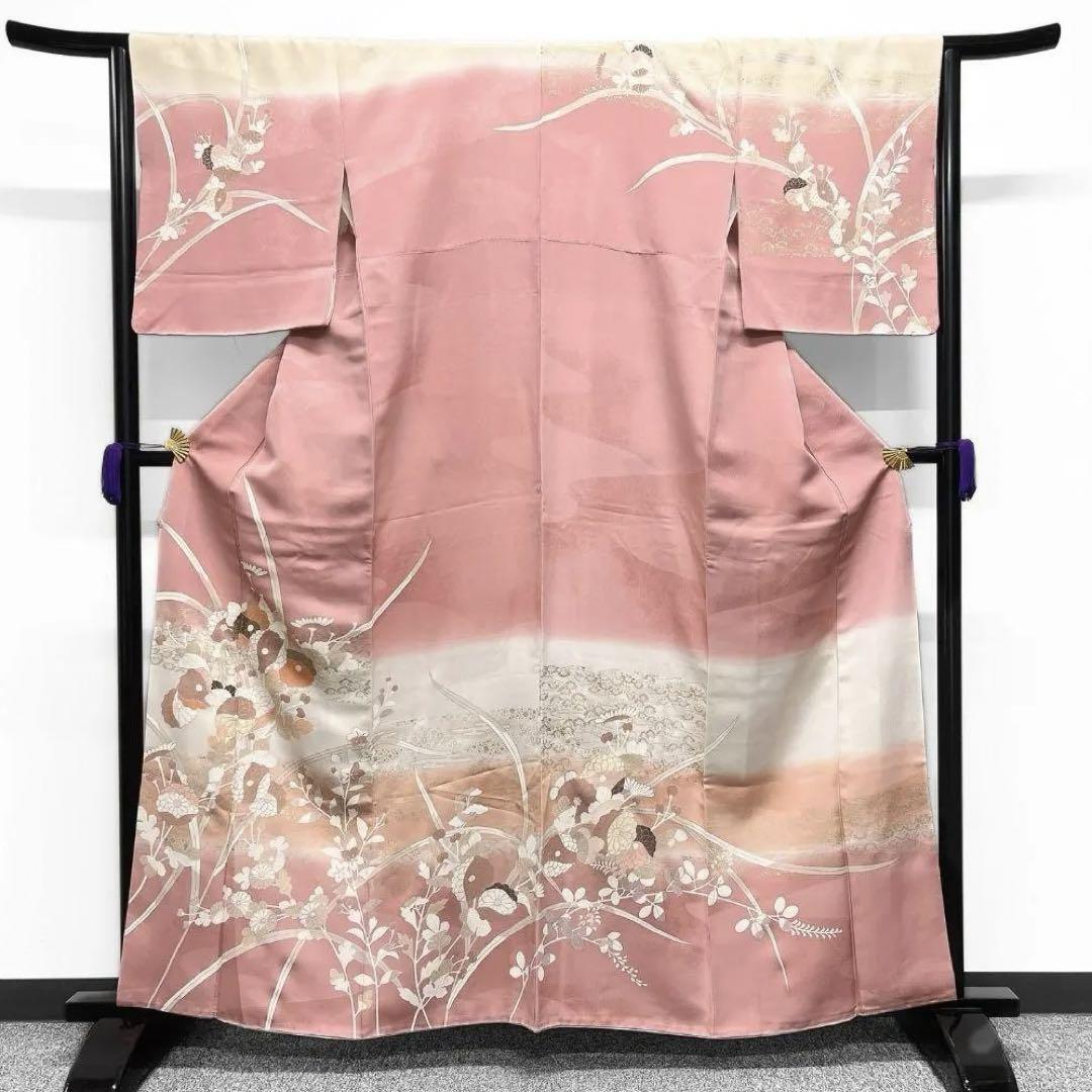 綺麗なグラデーション地に華やかな柄が描かれた一着となっております。