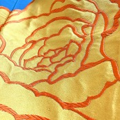 色とりどりの薔薇に金糸、銀糸が織られた豪快で優美な一着となっております。