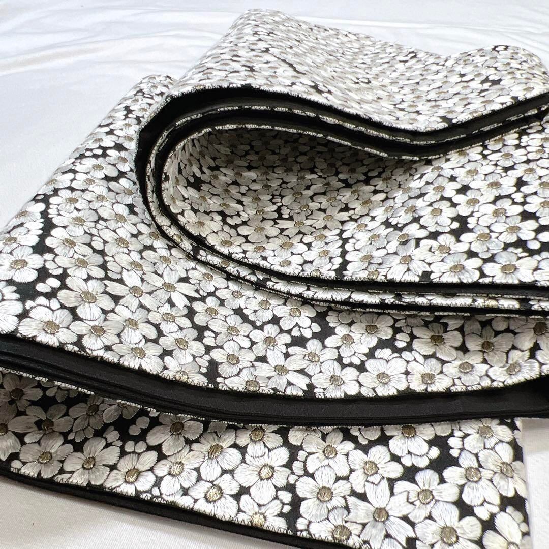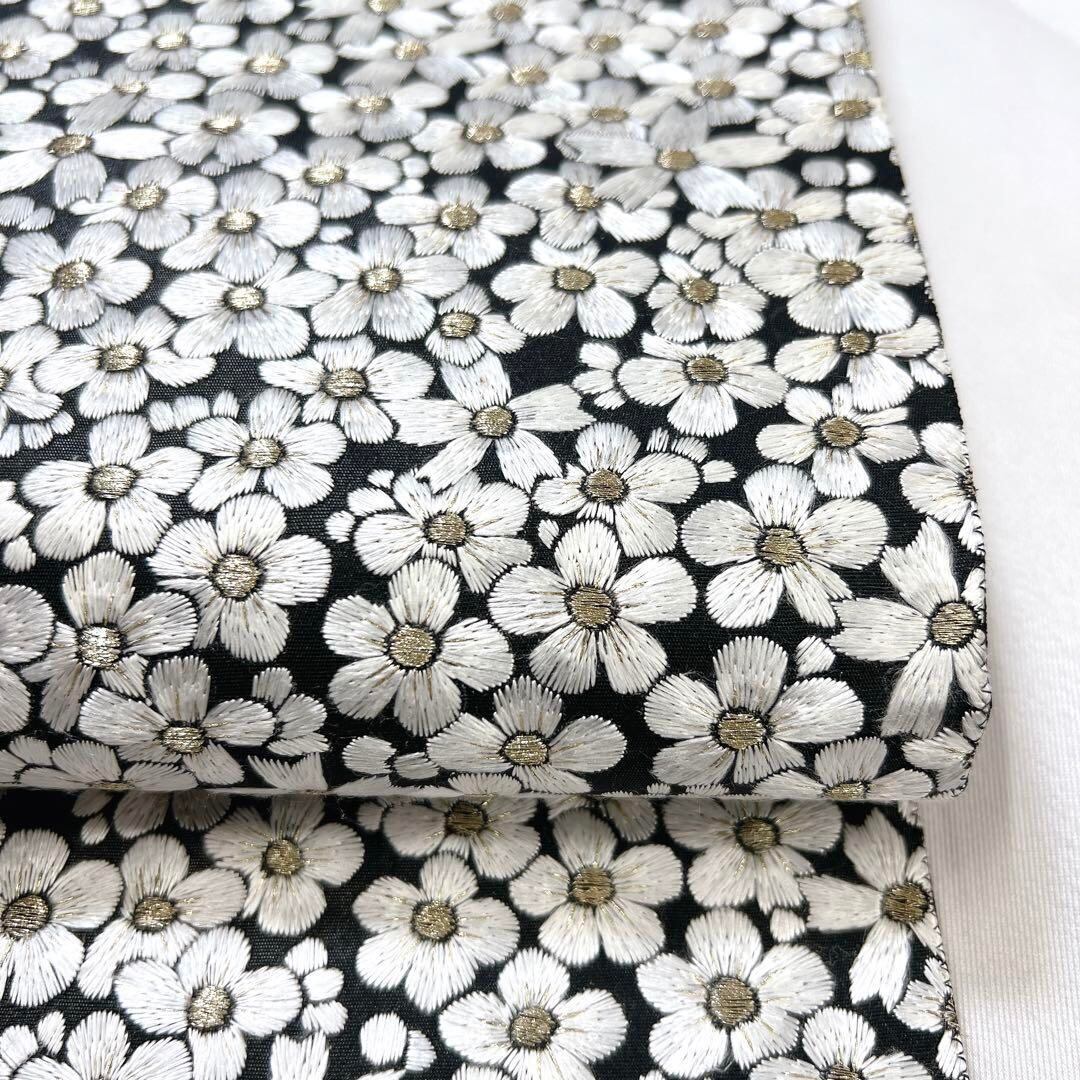細かな白の桜花模様の総刺繍が黒地と相まって