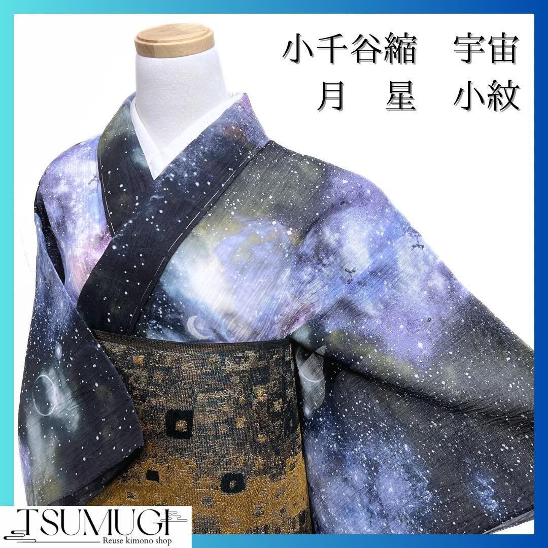小千谷縮 Digital Ojiya 宇宙 月 星 小紋 着物 014w