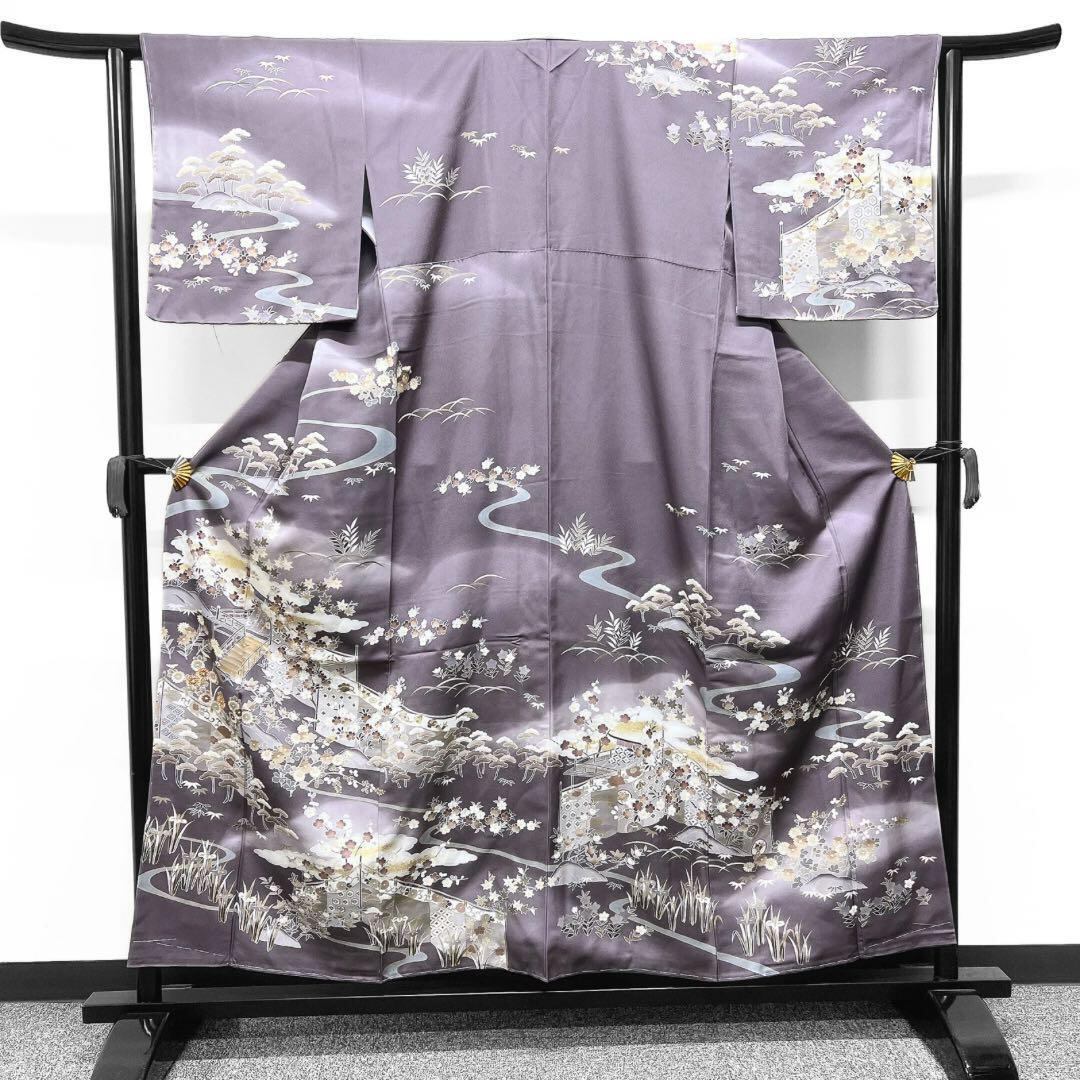 友禅の金駒刺繍が上前にあしらわれた訪問着です。