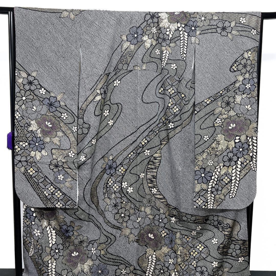モノトーンの総絞りに金彩があしらわれた振り袖です。