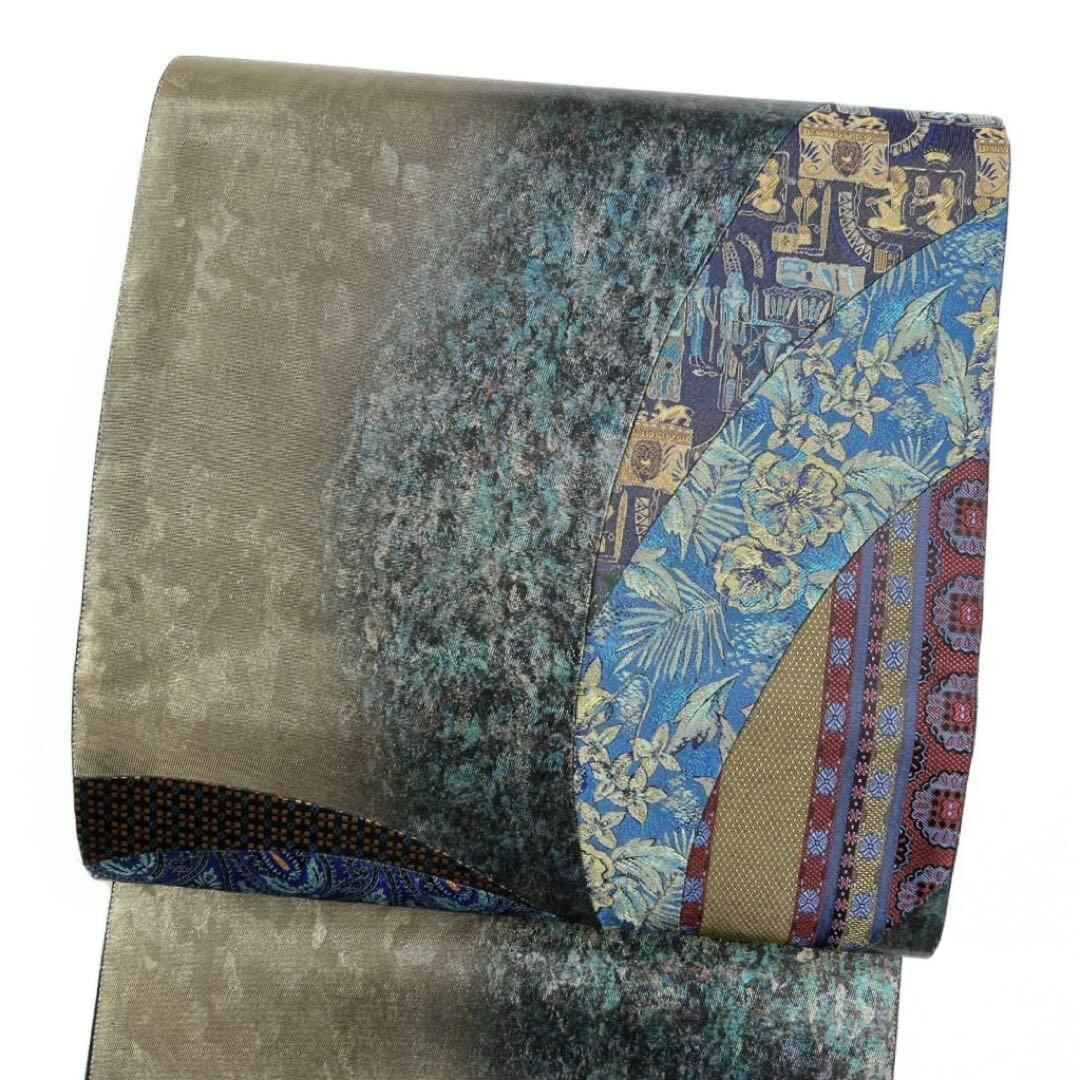 訪問着 袋帯セット お召 切り嵌め 唐花 動物 チェック 着物 064w d
