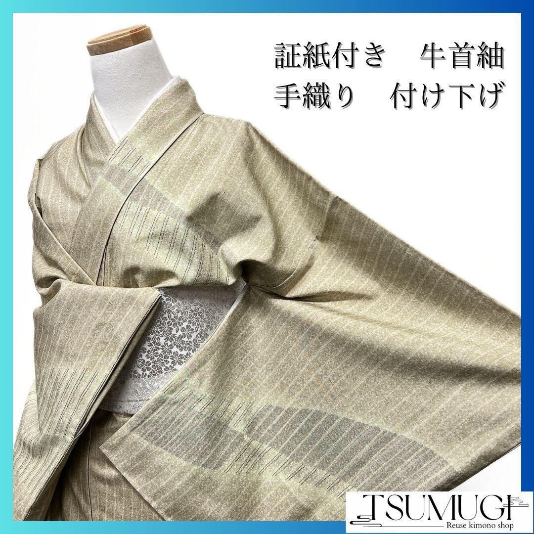 証紙付き、手織りの牛首紬の付け下げです。