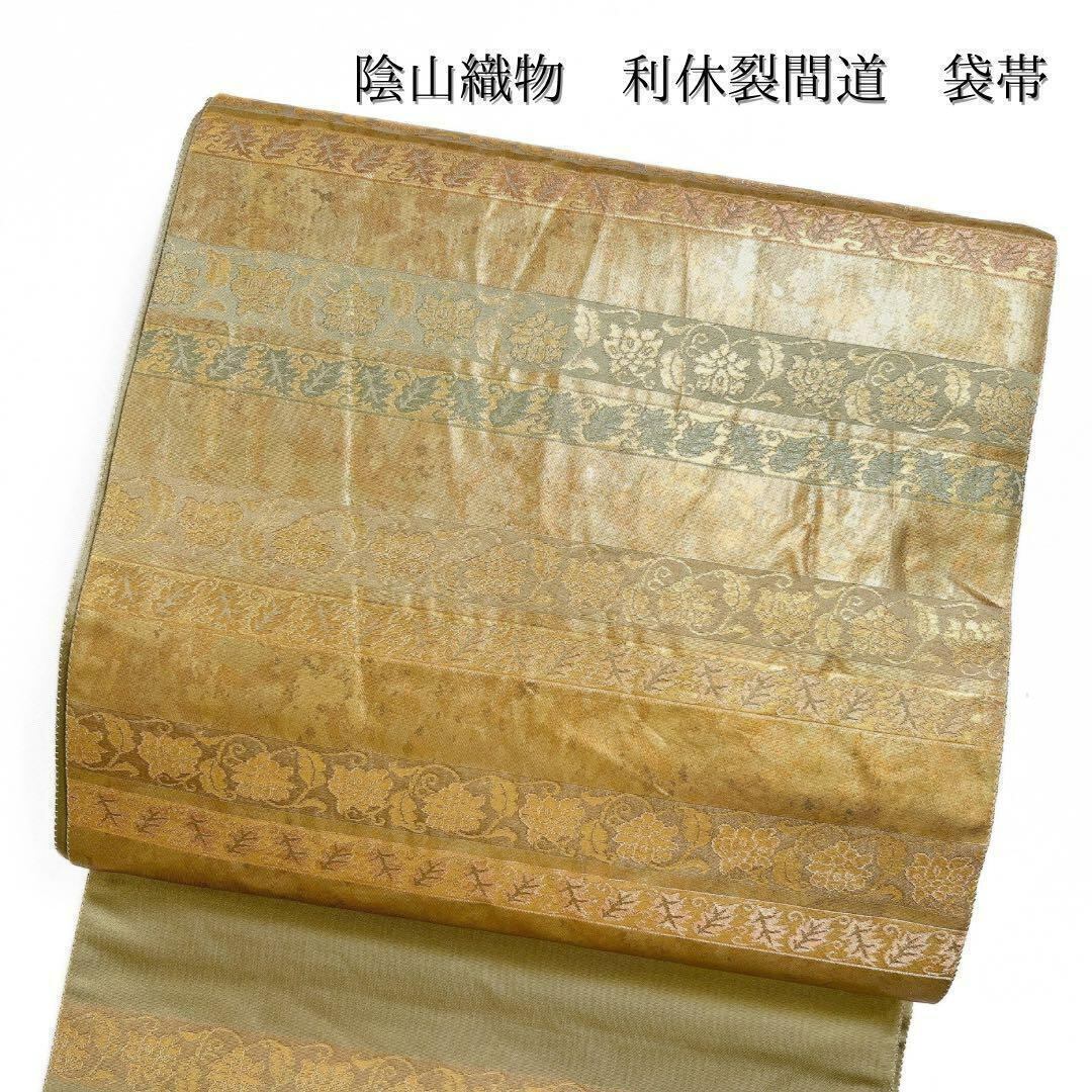 陰山織物、利休裂間道、横段に唐花模様の袋帯です。