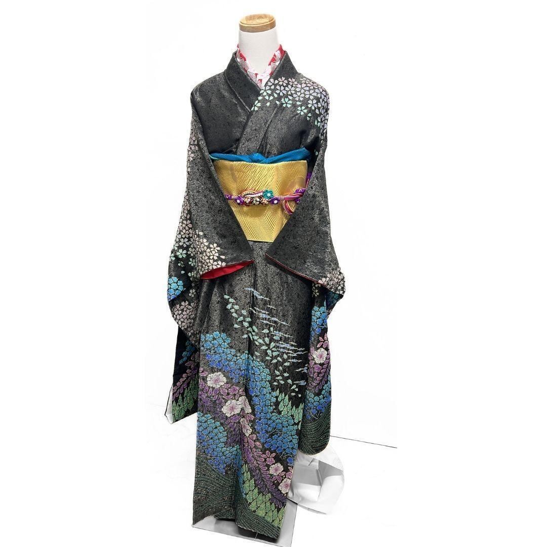 金通しが煌めく辻ヶ花の振袖と、金の雲模様の袋帯のセッドです。
