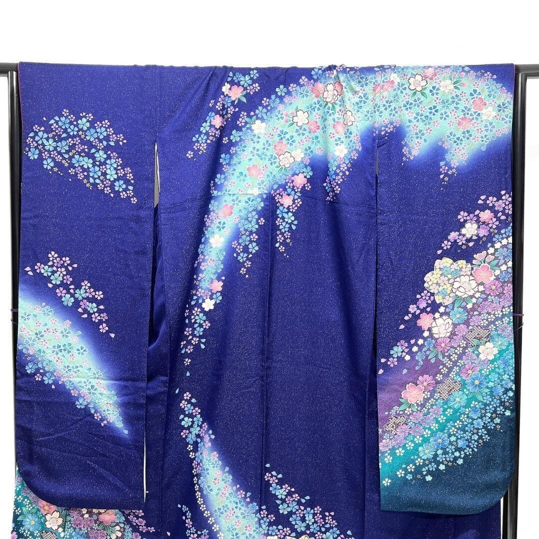 流線桜花模様と銀通しが美しい振袖、華やかな桜花模様の織り出し袋帯のセットです。