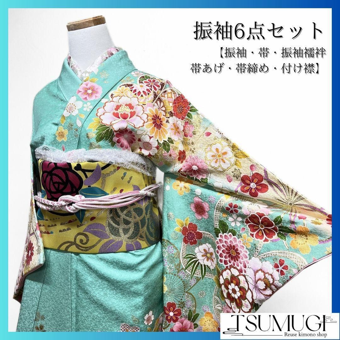 振袖・帯・振袖襦袢・帯あげ・帯締め・付け襟の振袖6点セットです。