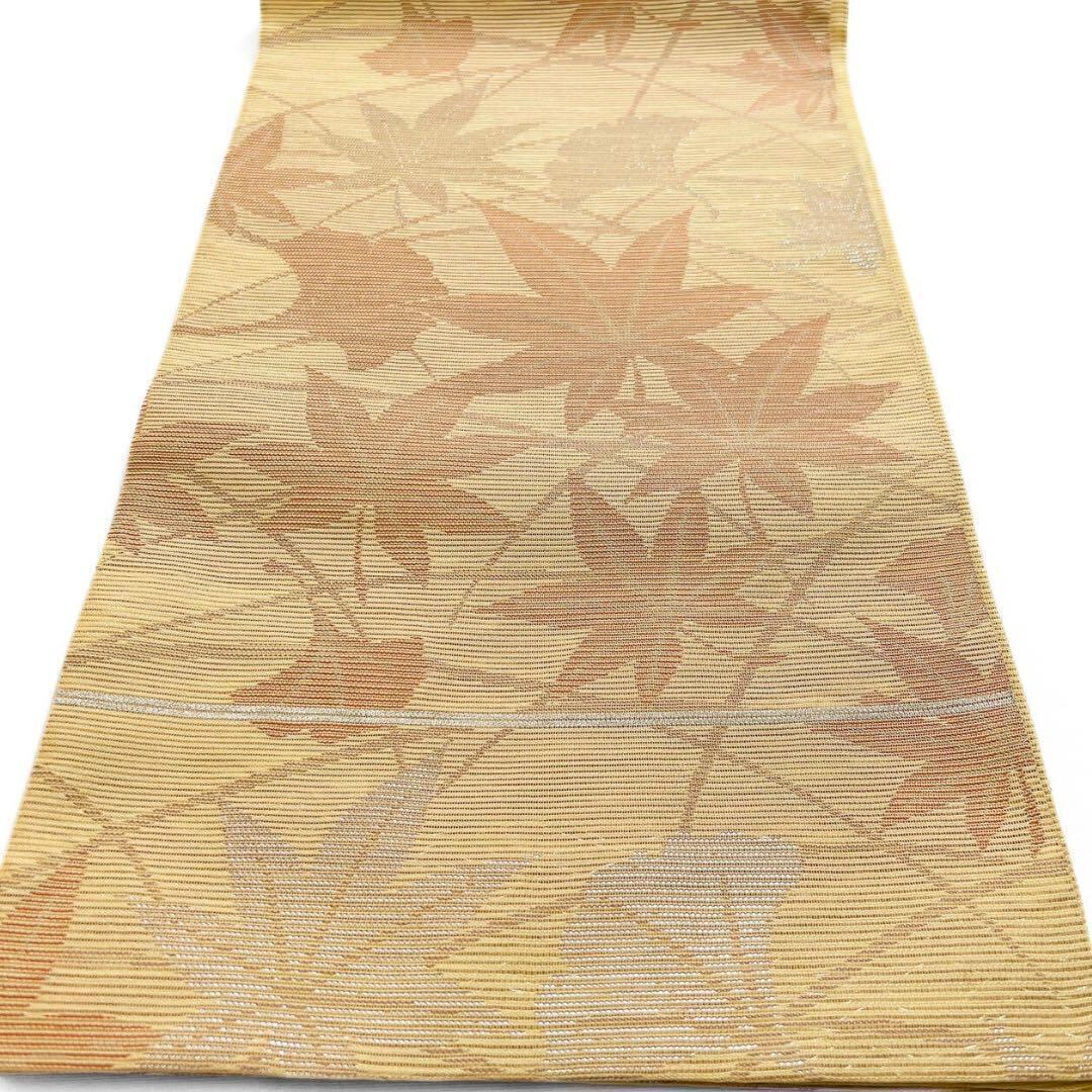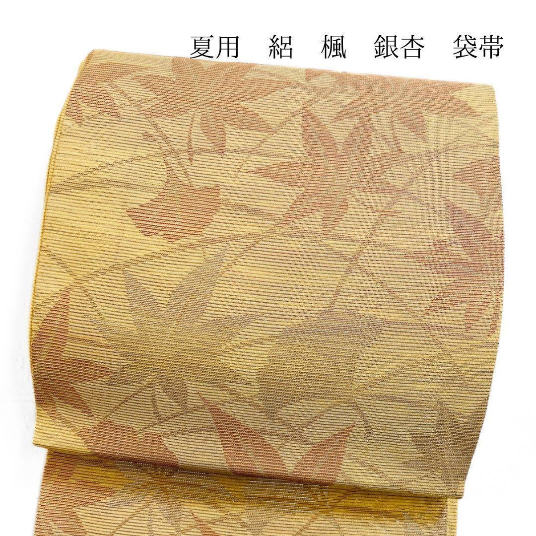 夏用、絽に楓と銀杏が織り出された袋帯です。