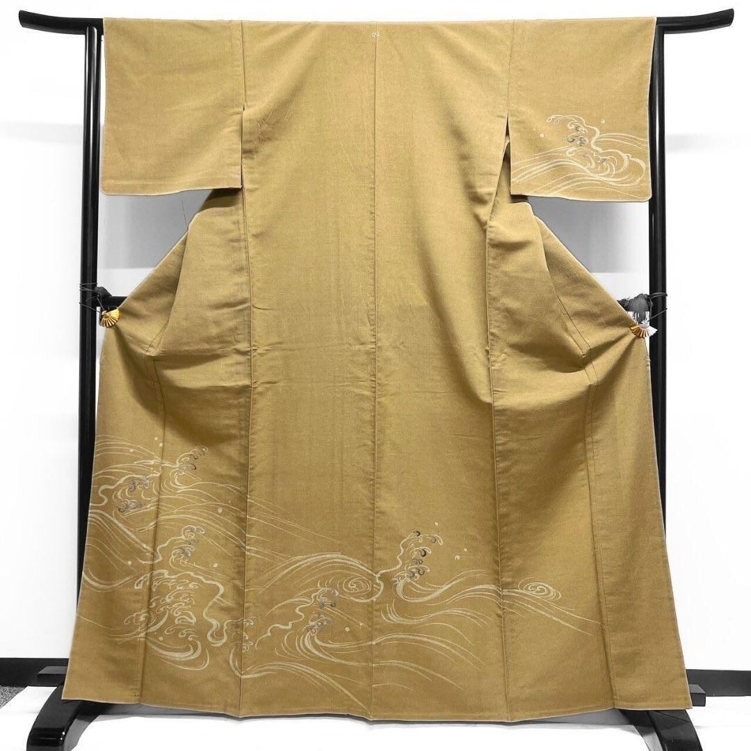 落ち着いたお色味に細やかにあしらわれた波模様の刺繍が繊細なデザインの一着です。