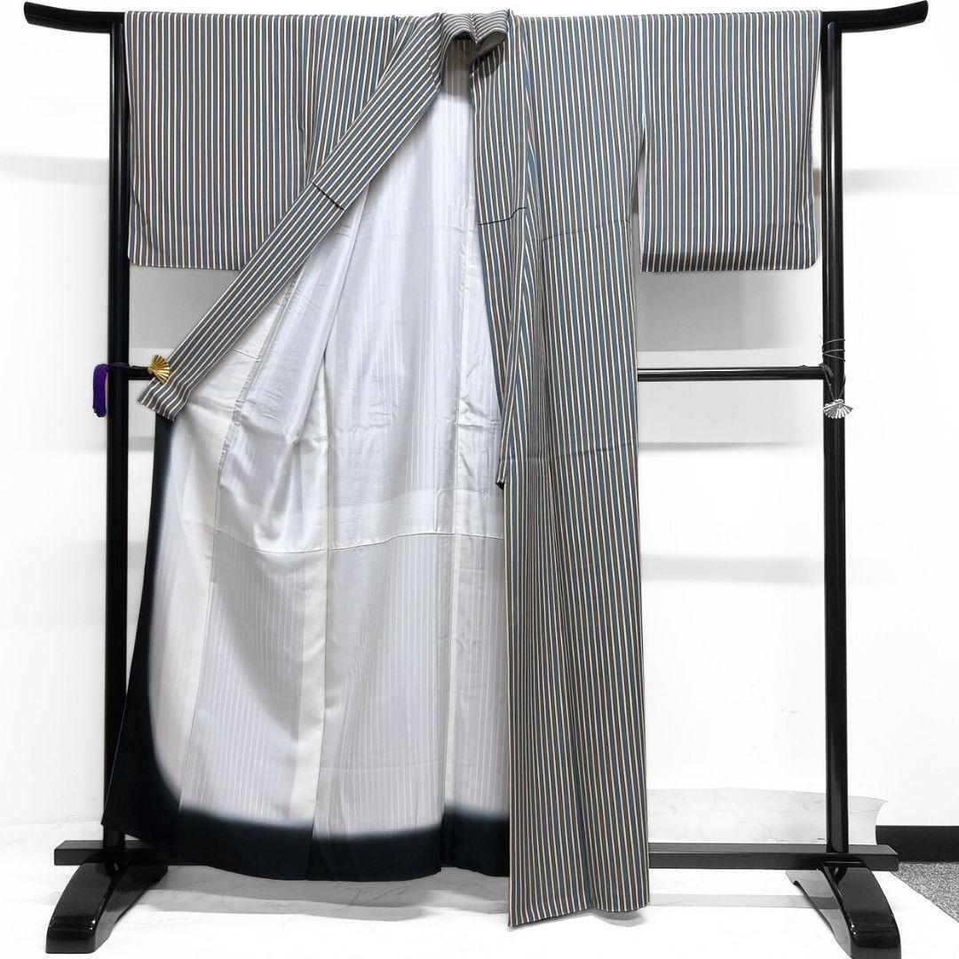 縦縞に子持ち縦様、ブルーカラーの小紋です。