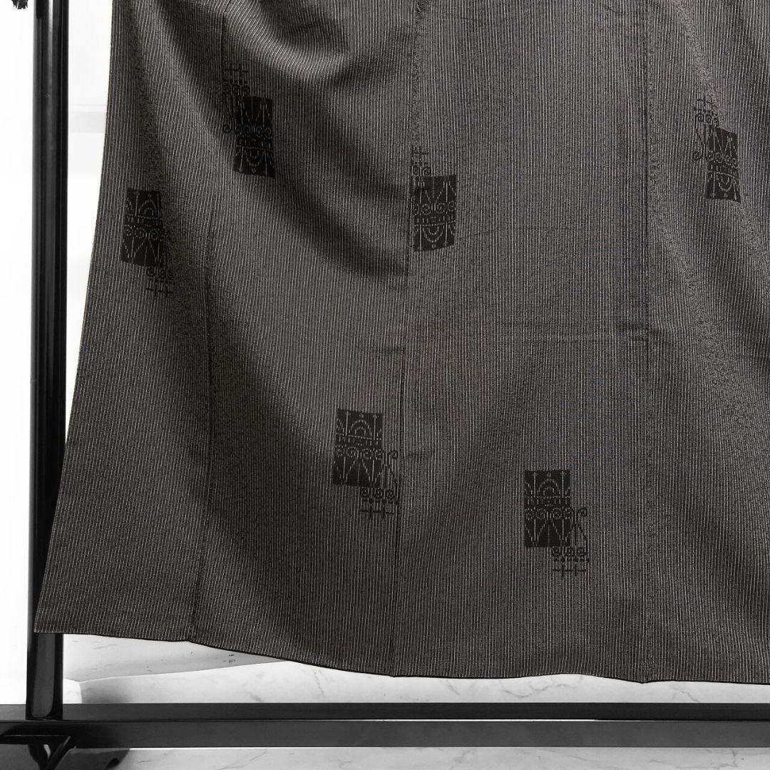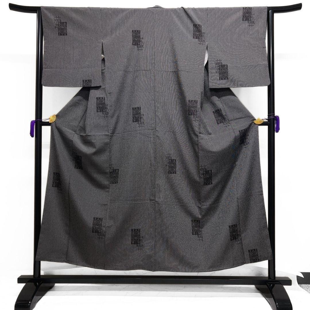 塩沢紬、縦縞にモノトーンのお色味の小紋です。