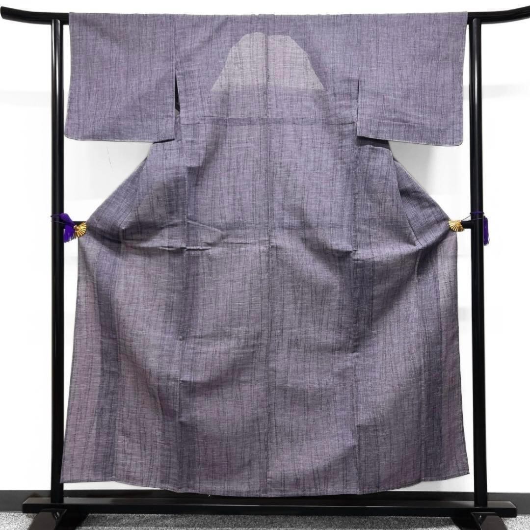 くすんだ薄い紫に木目調地紋がお洒落な一着です。