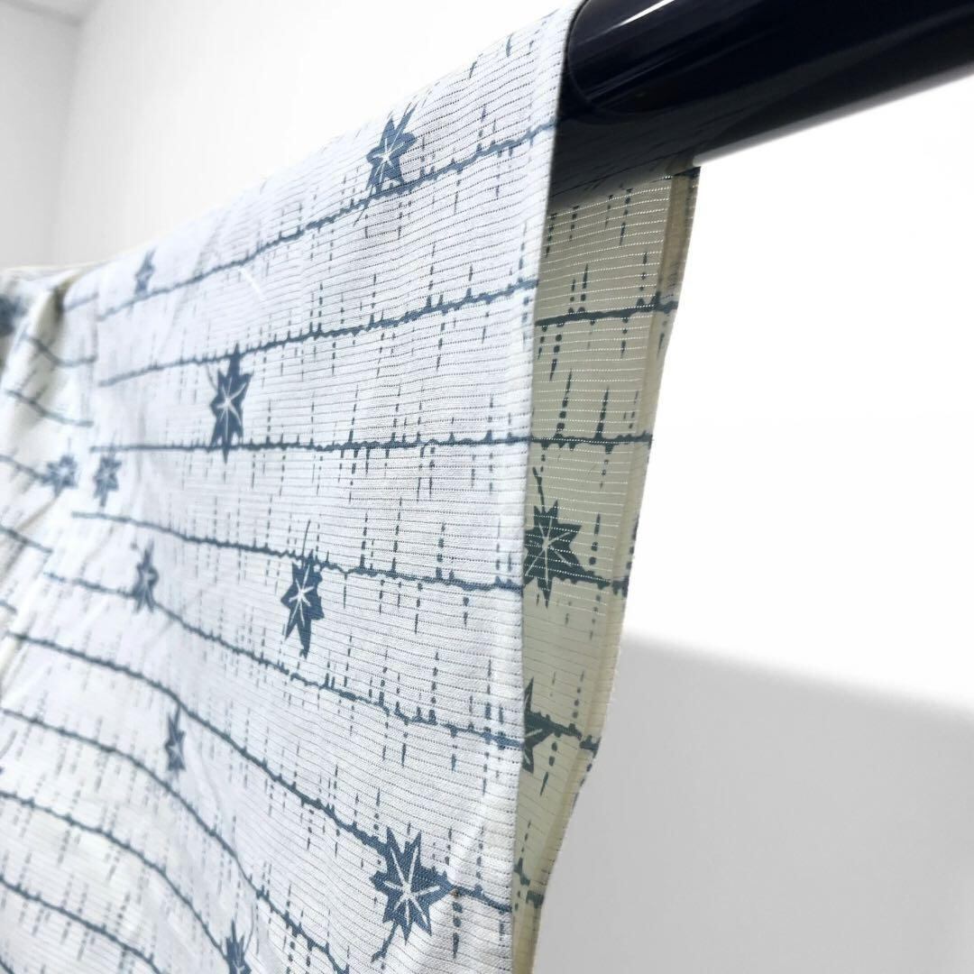 白地に横縞と楓模様が儚げにデザインされた1着です。