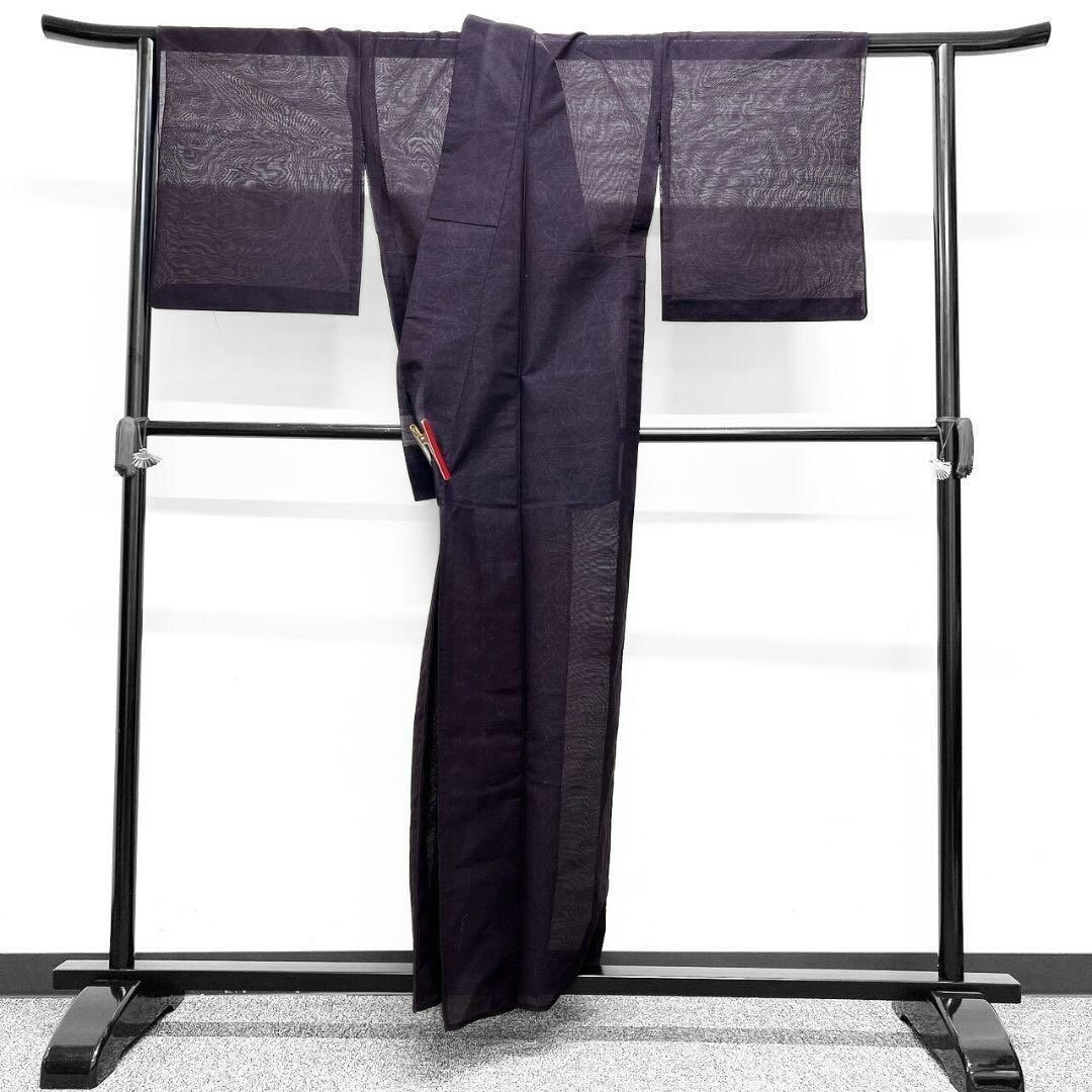 深い紫色に水面のような抽象模様が粋なデザインの1着です。、