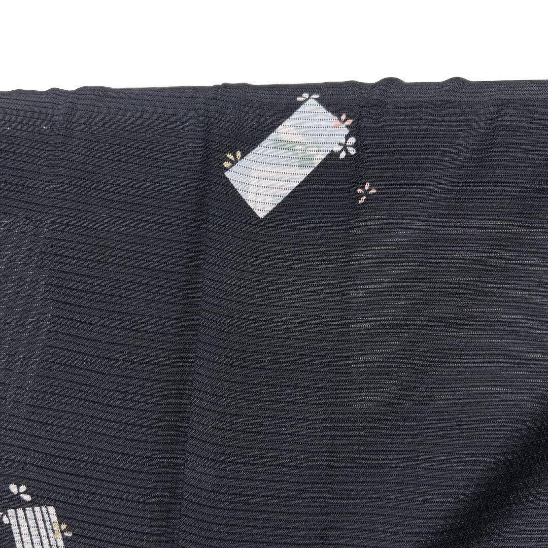 絽の黒地に白の小花模様と短冊の文様がお洒落な一着です。