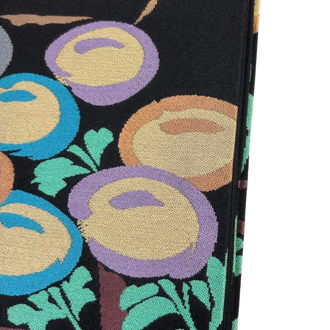黒地に織られた抽象的な饅頭菊の文様が華やかなデザインの一着です。