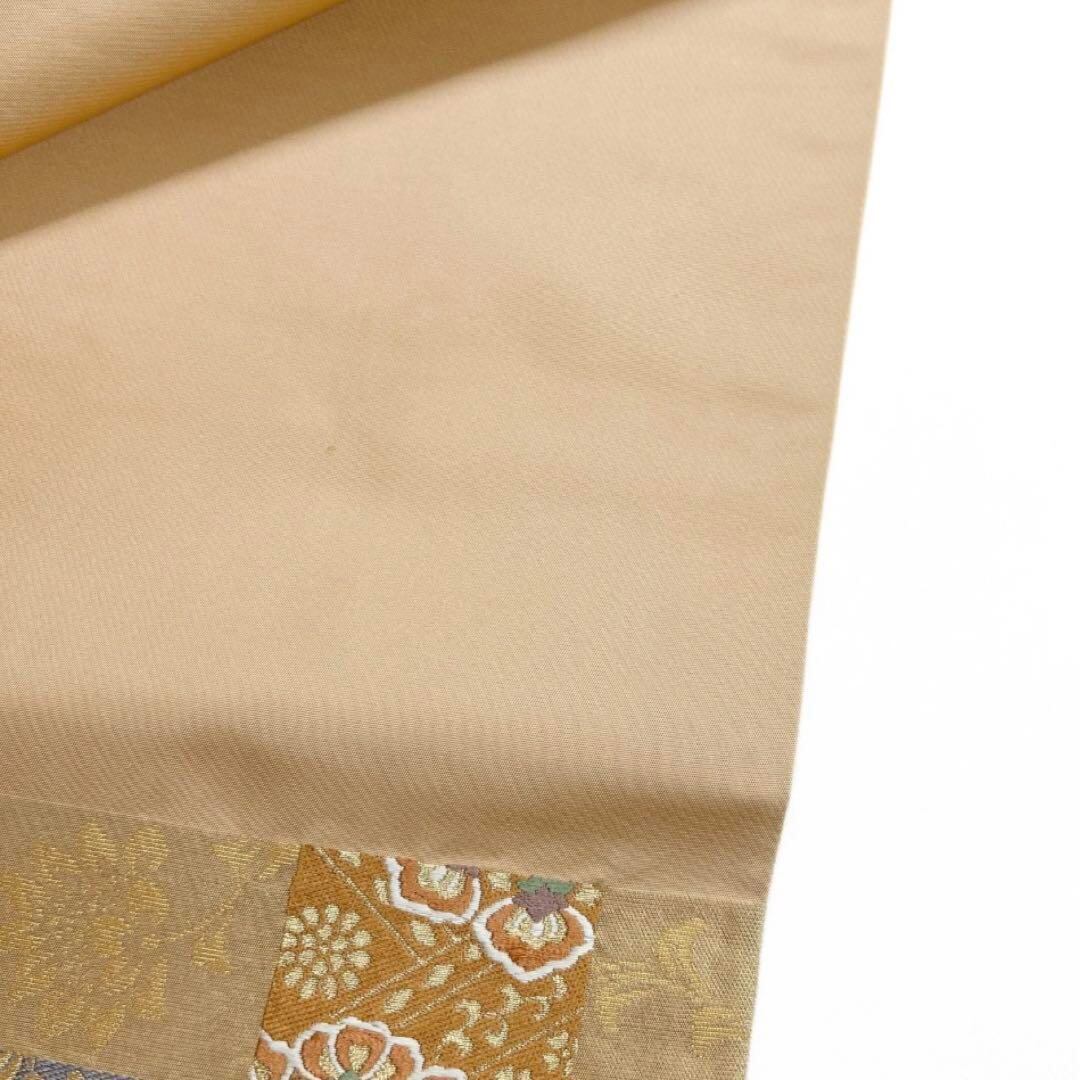 金色地に唐花と短冊に七宝や華紋が織られた華やかなデザインの一着です。