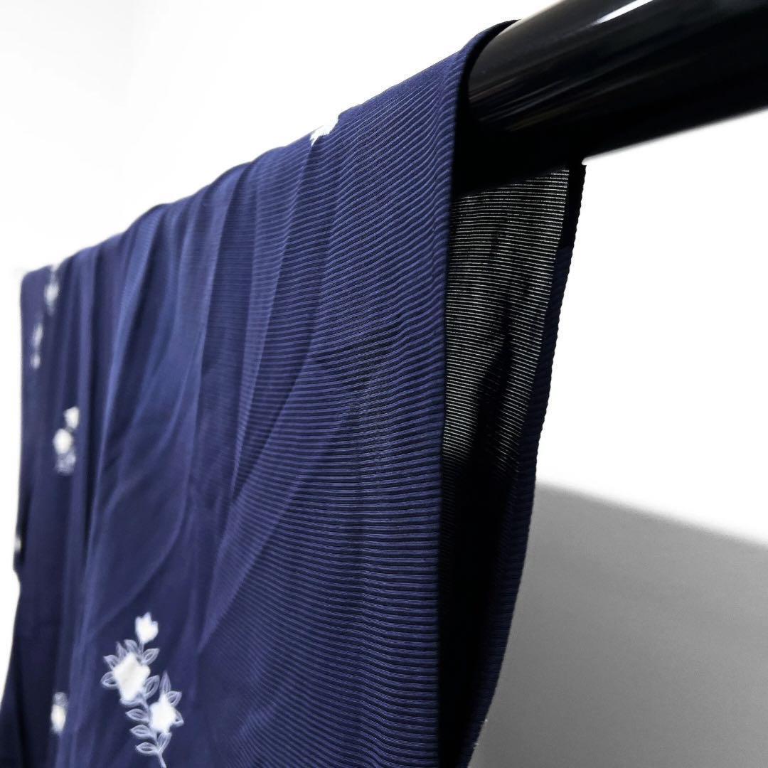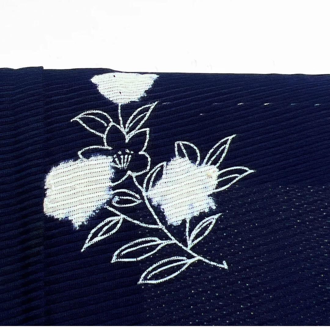 紺色に白の桔梗のお花が可愛らしく描かれた1着です。