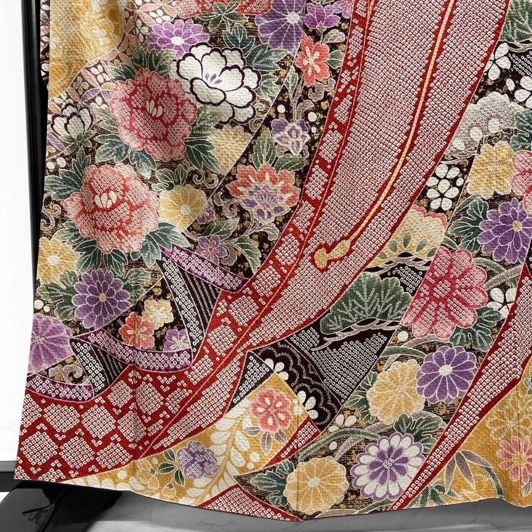 総絞り 鹿の子 牡丹 熨斗 松竹梅 振袖 着物 104a p