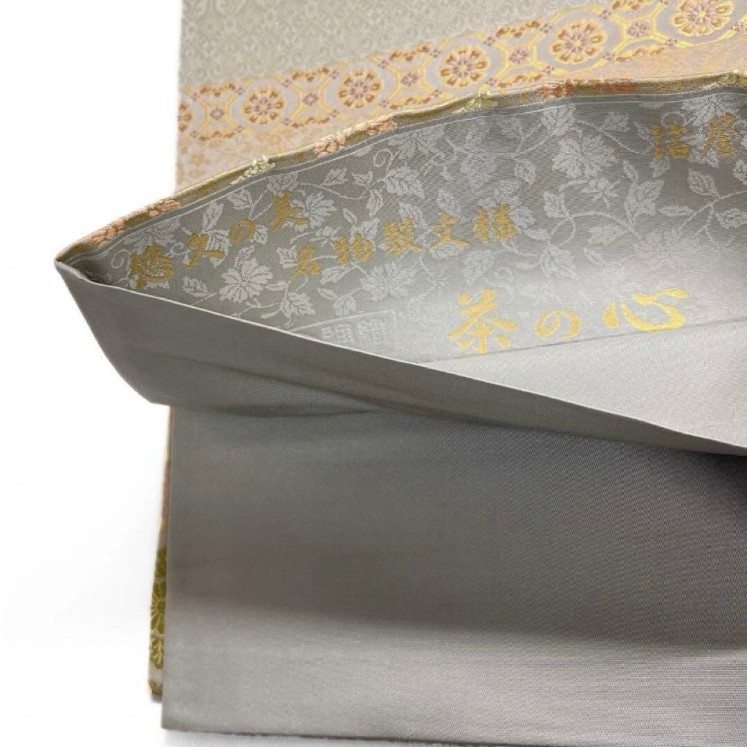 横段に華紋や唐花、蜀江紋が織られた華やかなデザインの一着です。