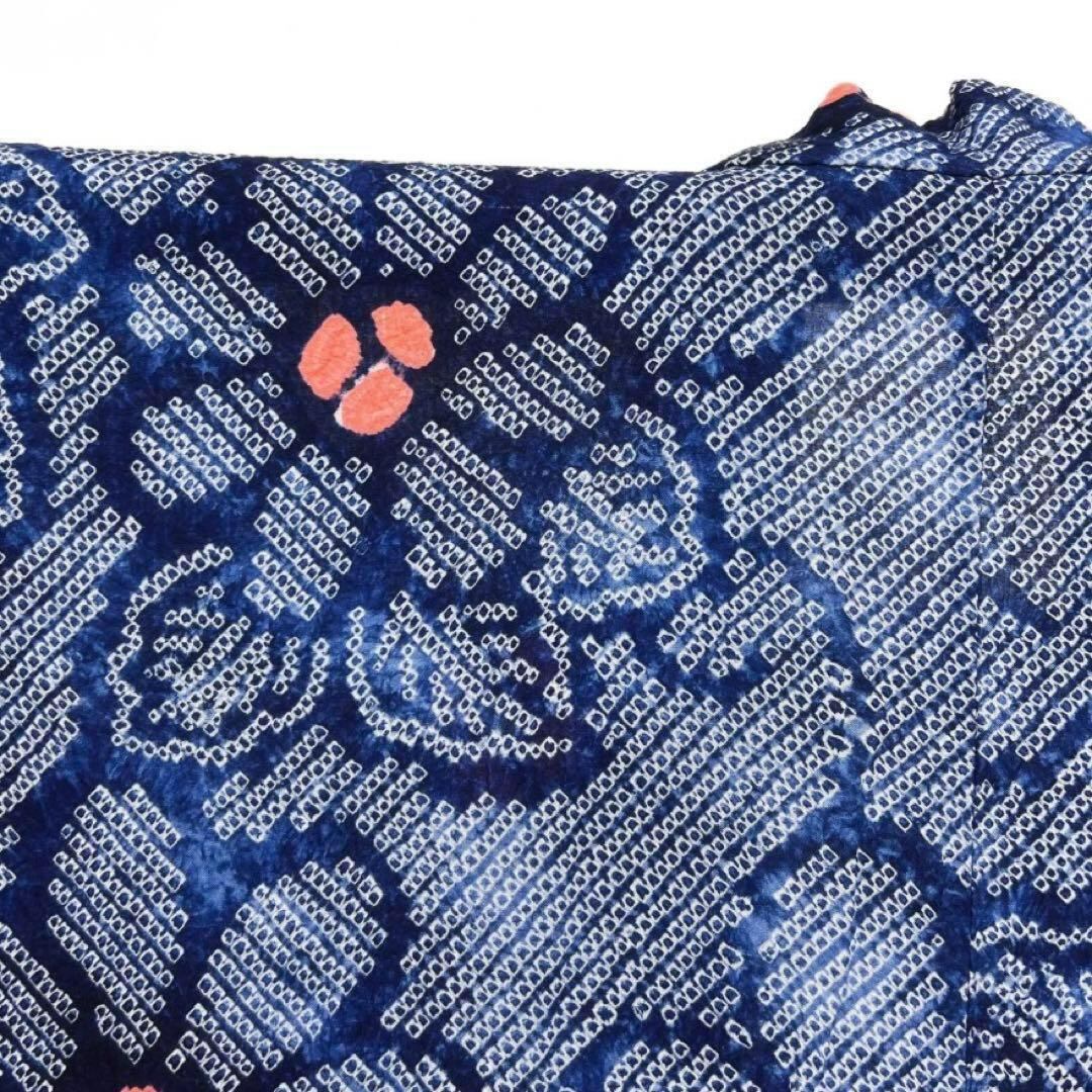 ネイビーのグラデーション地に有松鳴海絞りで描かれた花模様がお洒落なデザインの一着です。
