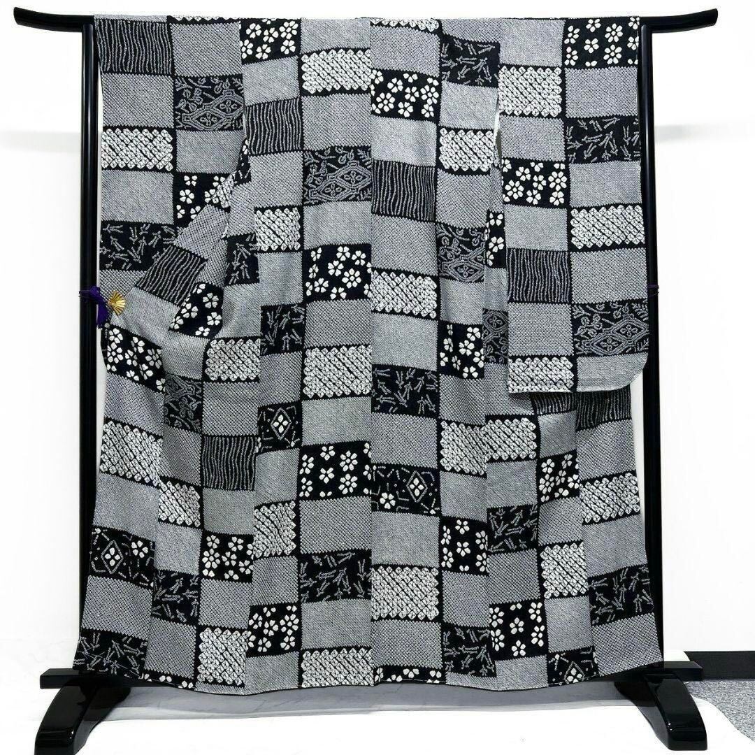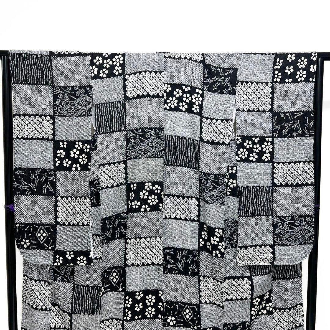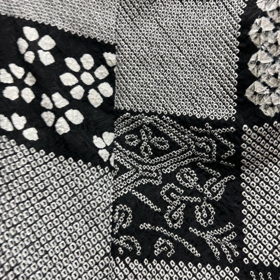 総絞り 鹿の子 市松模様 花模様 モノトーン 振袖 着物 104a p
