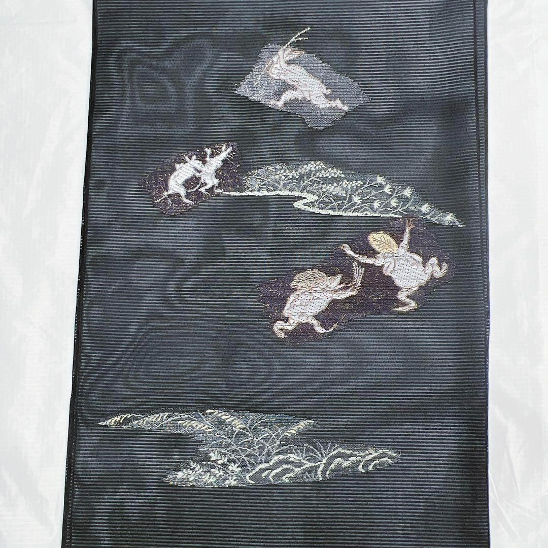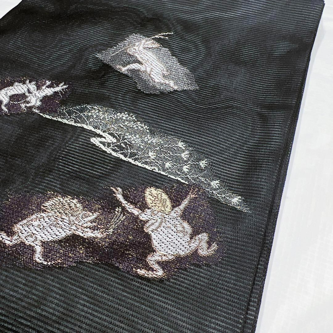 絽生地に人気の鳥獣戯画模様が織られた一着です。