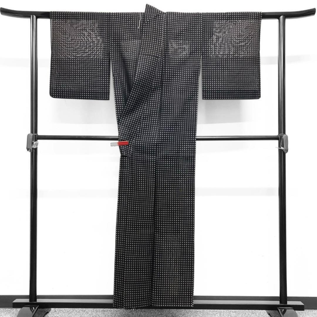 紗の黒地にグレーの格子模様がお洒落なデザインの一着です。