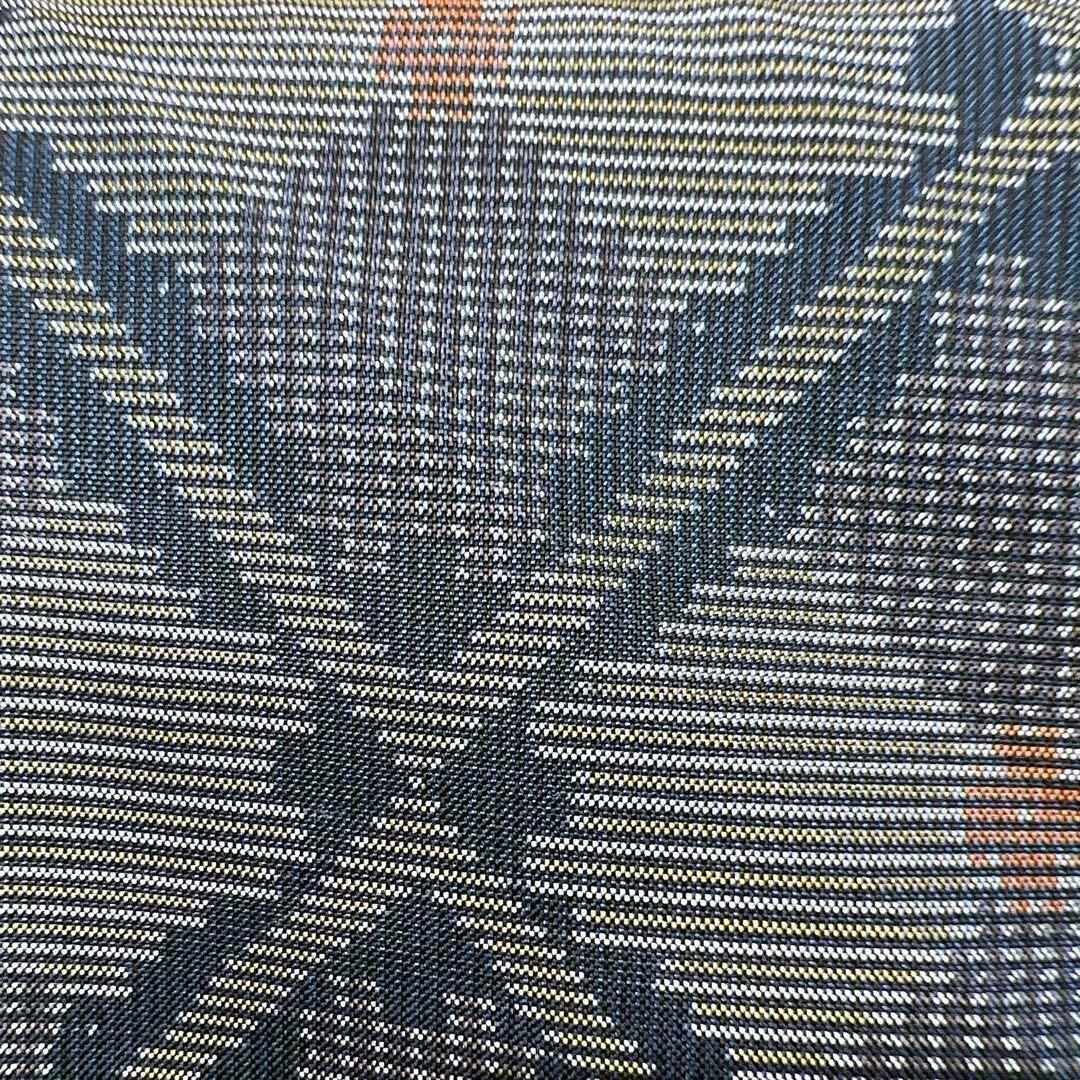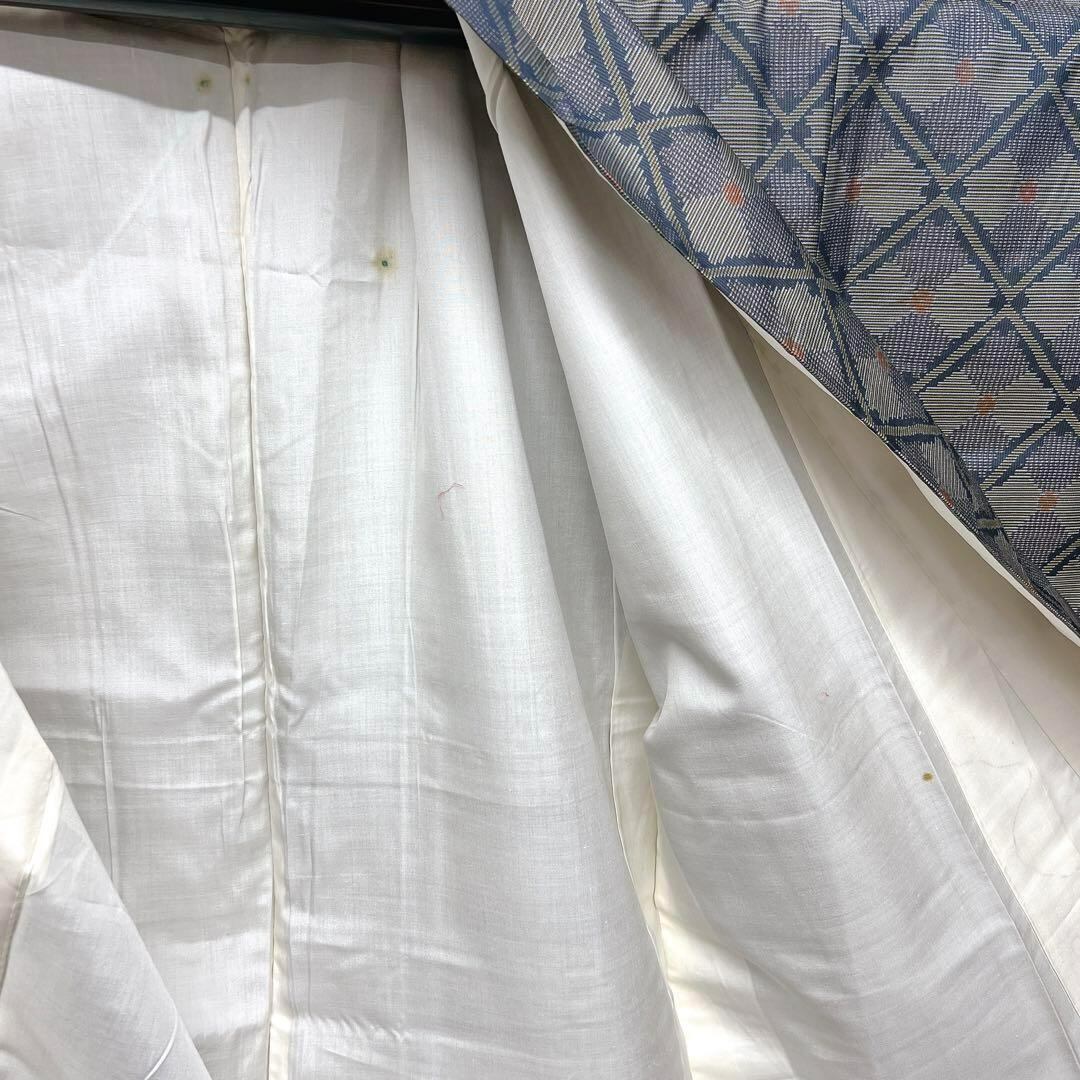 少しブルーのかかった大島紬に菱形に赤い柄が織られた独特の模様がお洒落な一着です。