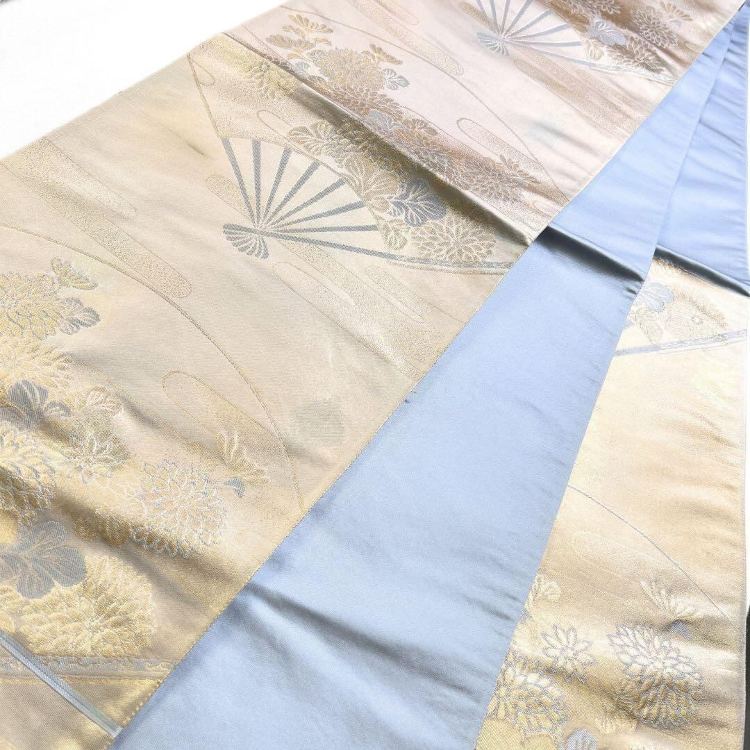 淡い金色と淡い水色の色使いが非常に美しい1着です。