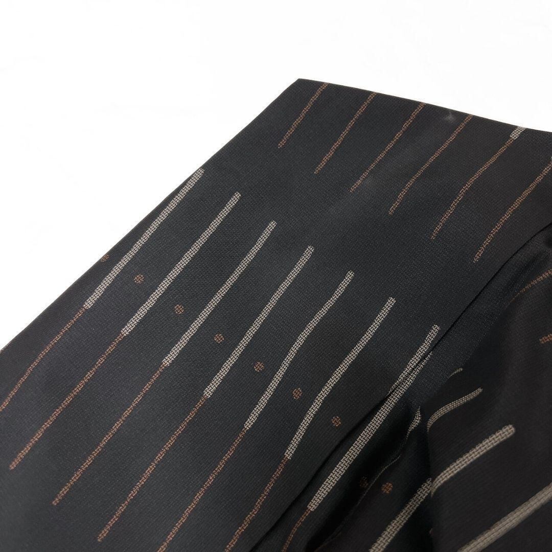 ダークトーンに均一に織られた抽象模様が美しい一着です。