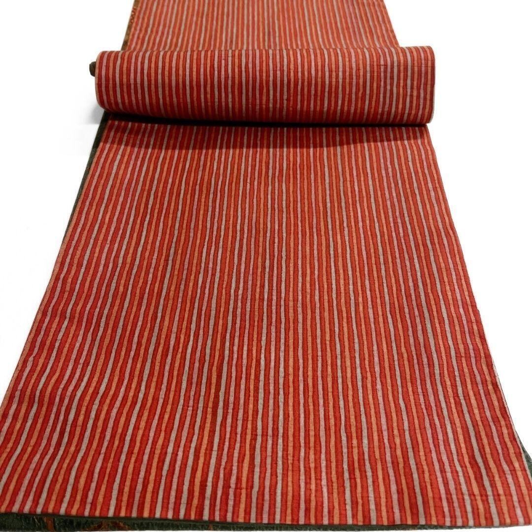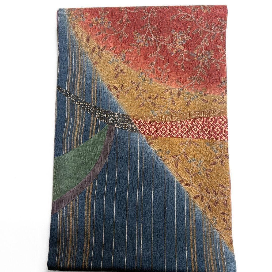 縦縞に唐花模様や花菱が織られた京袋帯です。