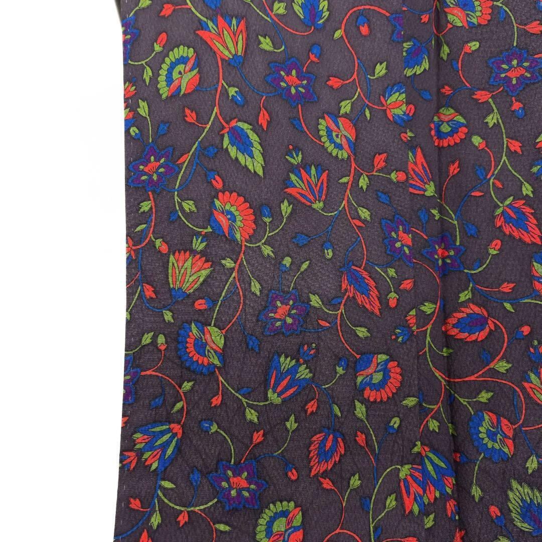 グレー地に映えるエキゾチックな色使いの唐草花模様が描かれたお洒落なデザインの一着です。