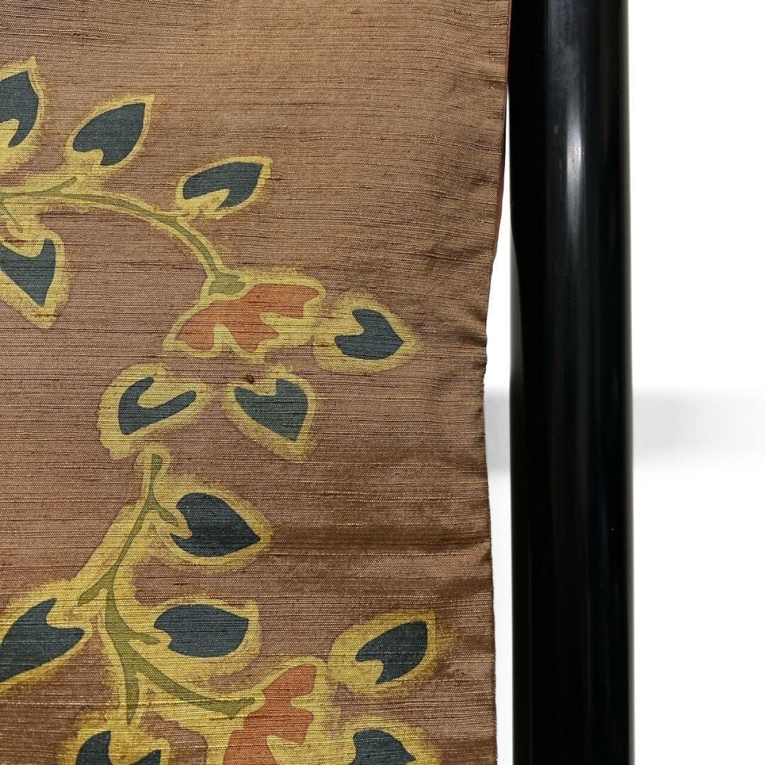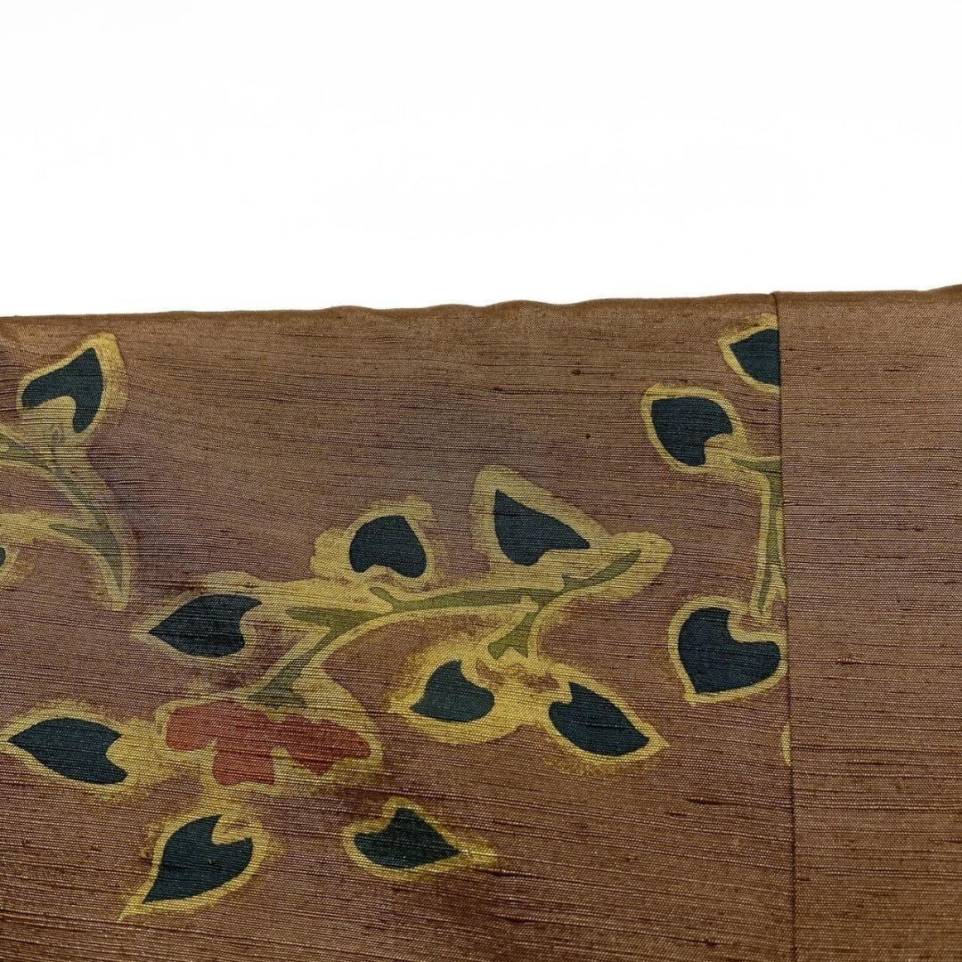 紬地に唐花模様が描かれたブラウンカラーの小紋です。