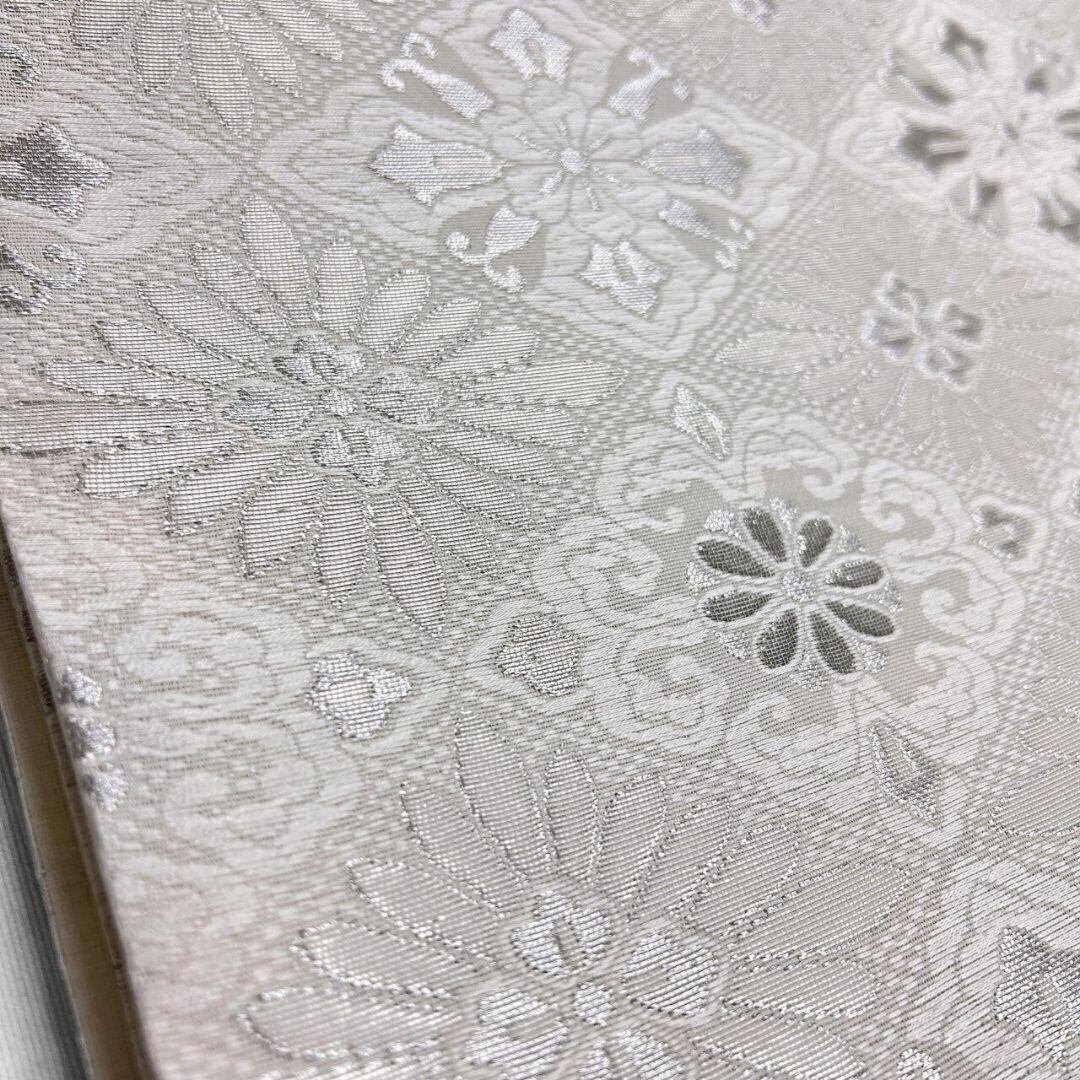 白と銀の美しい花菱が全体に華やかに織り出された一着です。