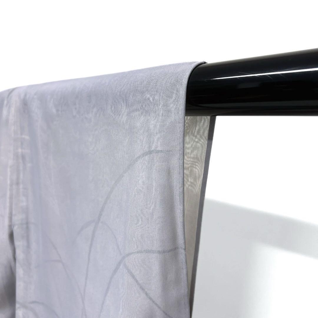 グレー味の強いパウダーブルー地にスワトウ刺繍と無双で描かれた稲穂に葦の文様が華やかなデザインの一着です。