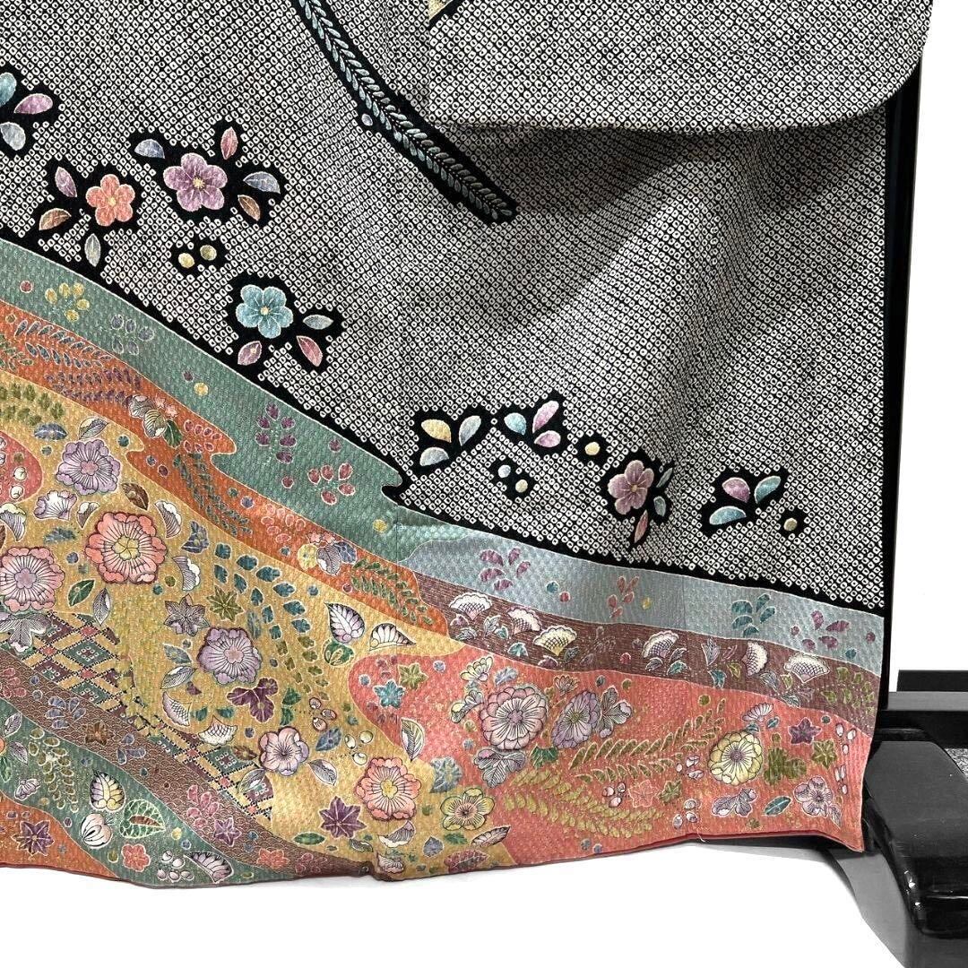 辻ヶ花や藤、桔梗が繊細なタッチで美しく描かれた1着です。