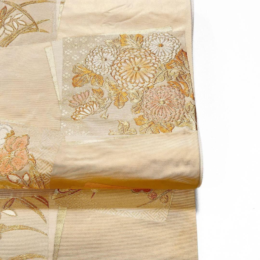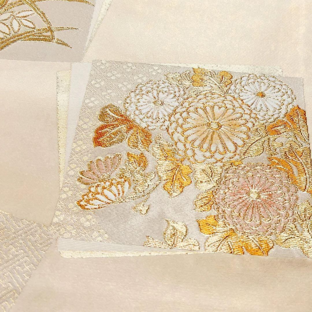 色紙模様に菊花や梅花、菖蒲などが繊細におられた1着です。