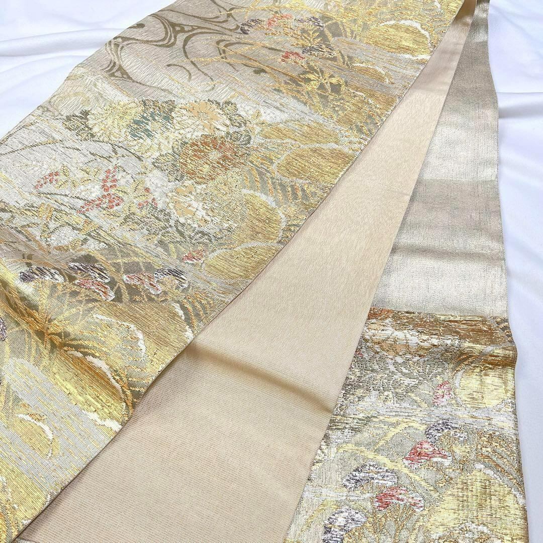 流水に菊花模様の織り出しの袋帯です。