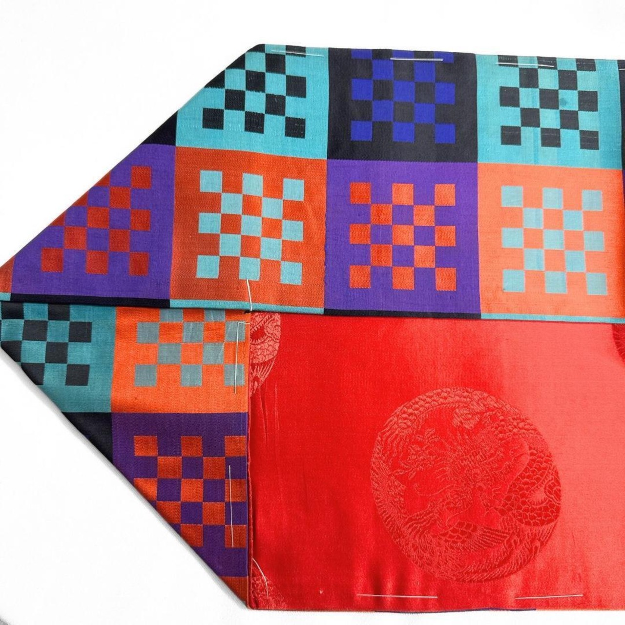 チェック柄がオシャレなアンティークの名古屋帯です。