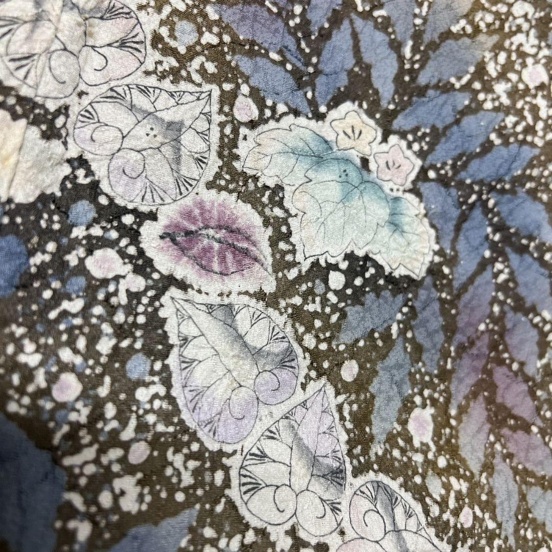 桐屋翠山工房 の藍染に辻ヶ花や藤の花が描かれた訪問着です。