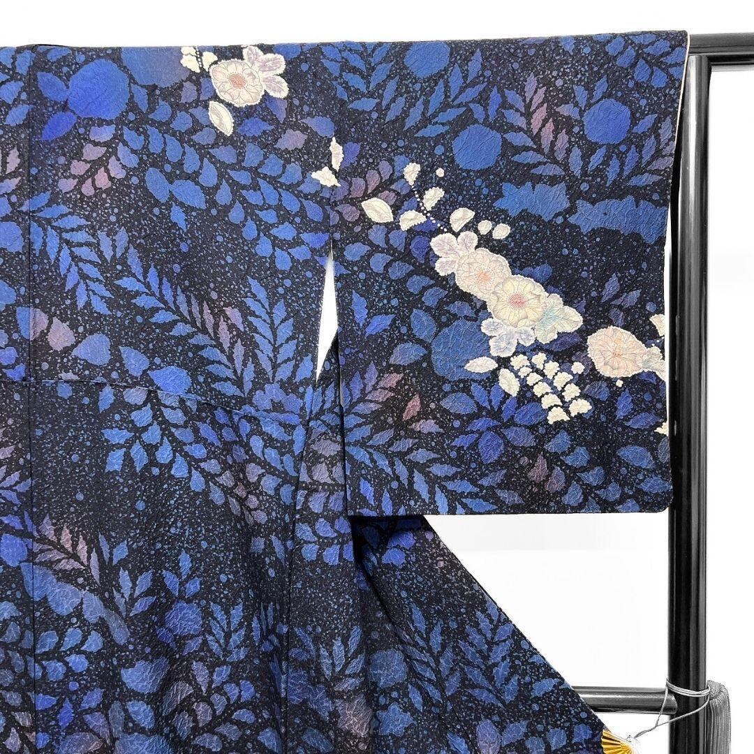 藍と淡いブラウンのグラデーションに華やかな辻ヶ花模様が美しい一着です。
