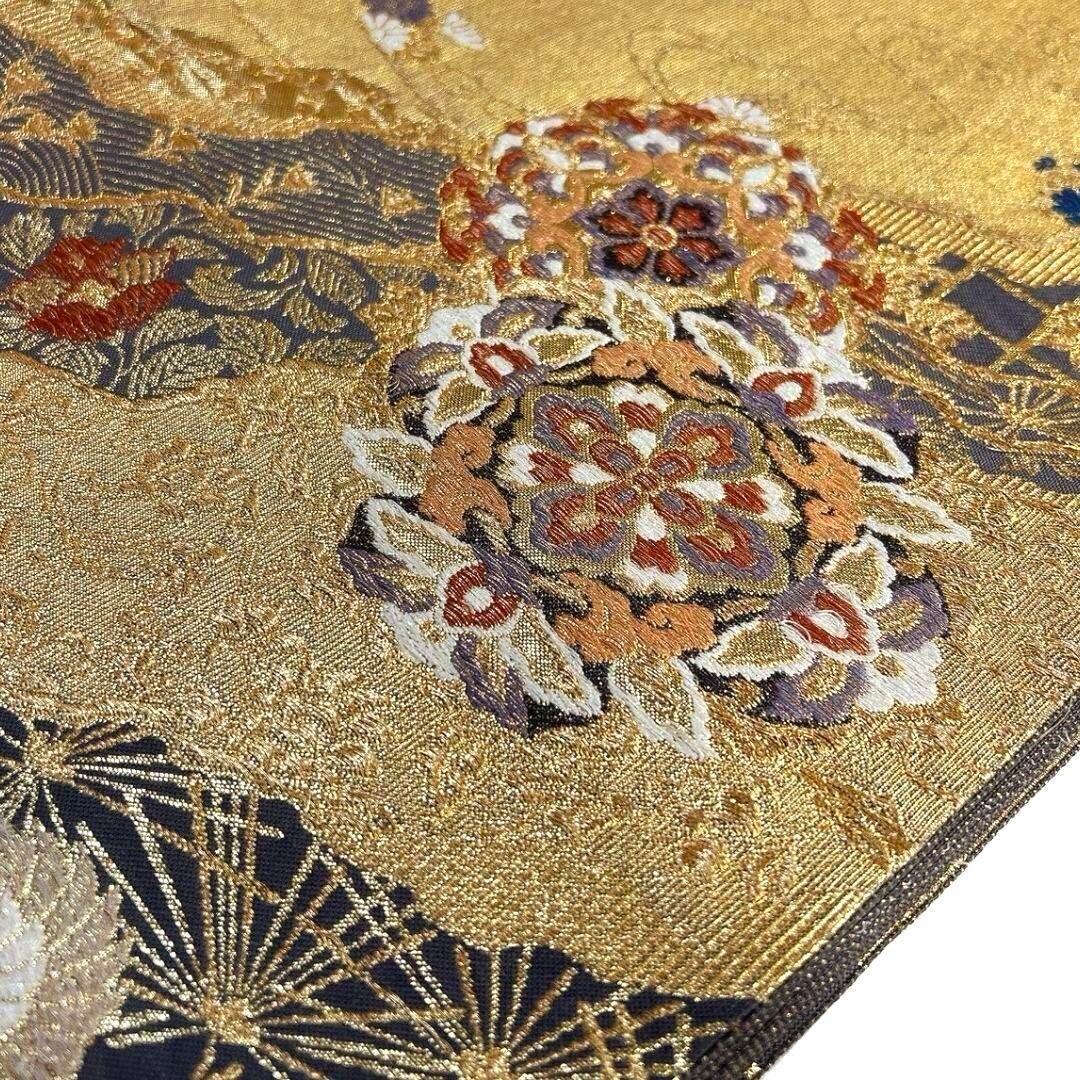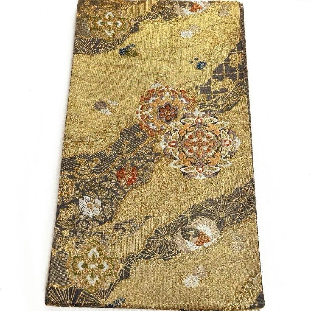 華紋に霞取りや観世水や菊花が織り出された袋帯です。