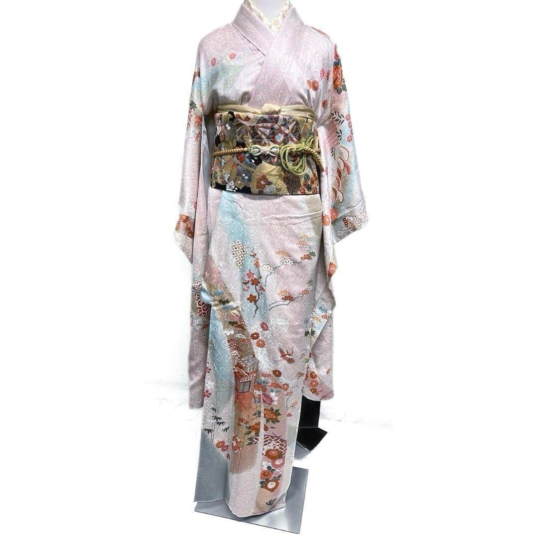 金彩 金駒刺繍 花模様【振袖6点セット】振袖 振袖帯 襦袢 着物 123a p