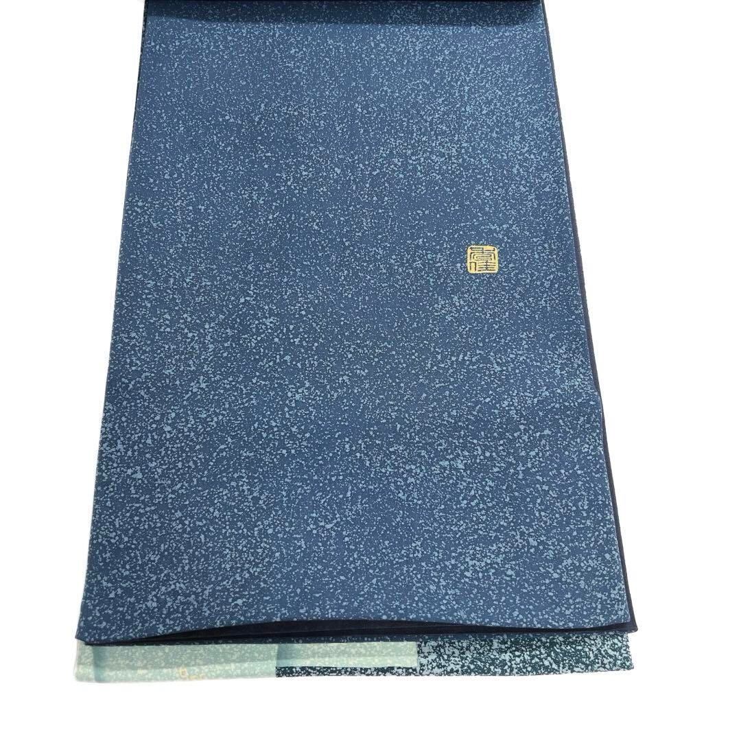 たたき染の藍染の地に金彩の鹿の子と色紙重ねの文様がお洒落なデザインの一着です。