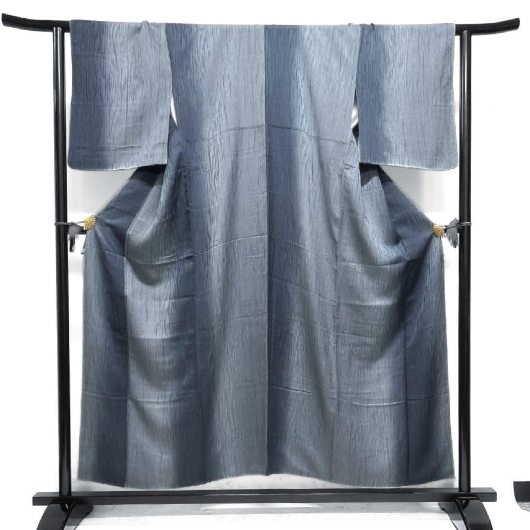 グラデーションのグレーの地によろけ縦縞のような流線模様がお洒落なデザインの一着です。